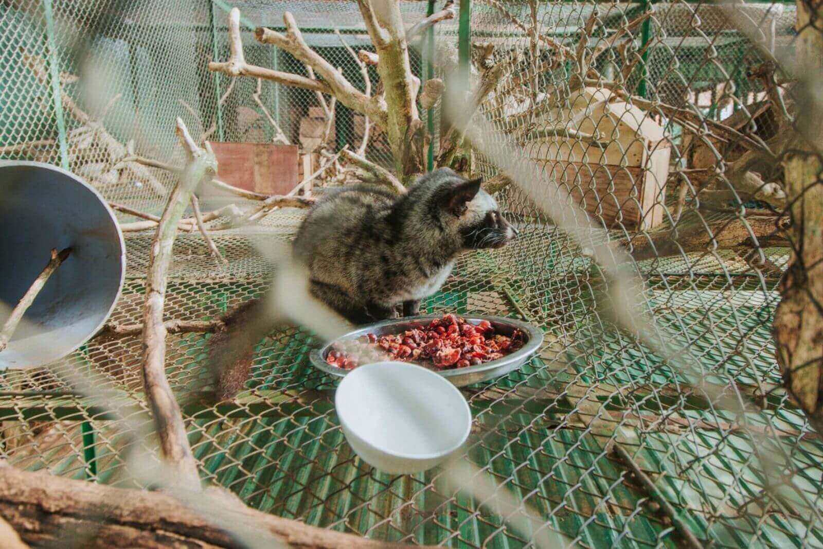 Những con chồn ở đây sẽ được chủ trang trại nuôi dưỡng và cho chúng ăn nhiều loại hạt cà phê khác nhau. Tuy cà phê này không có giá trị bằng loại cà phê chồn tự nhiên nhưng nó cũng rất ngon và có hương vị đặc biệt.