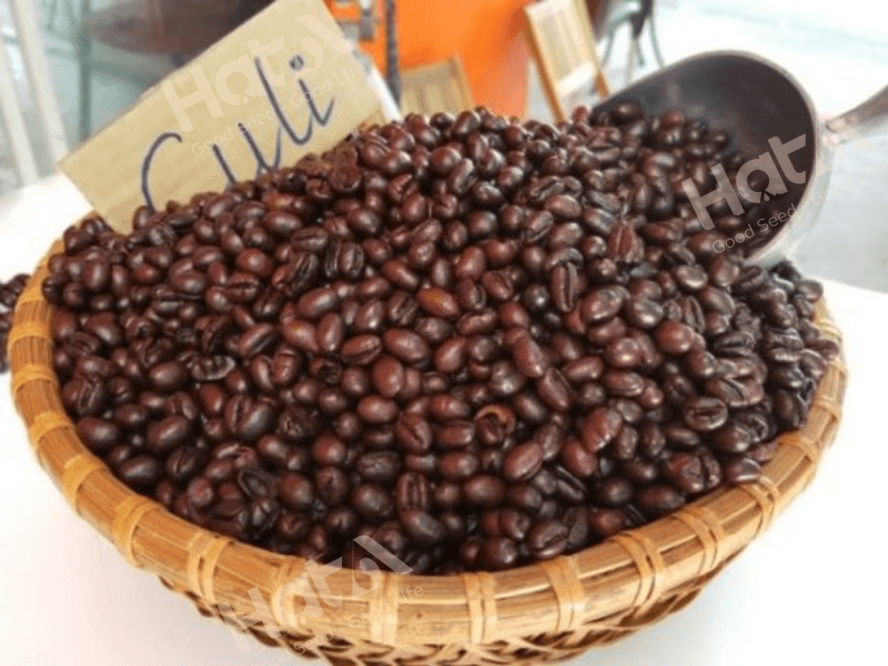 - Hình dạng: Hạt cà phê culi có hình dạng rất đặc biệt đó là hình bầu tròn như viên bi khác biệt hoàn toàn so với những loại cà phê khác.